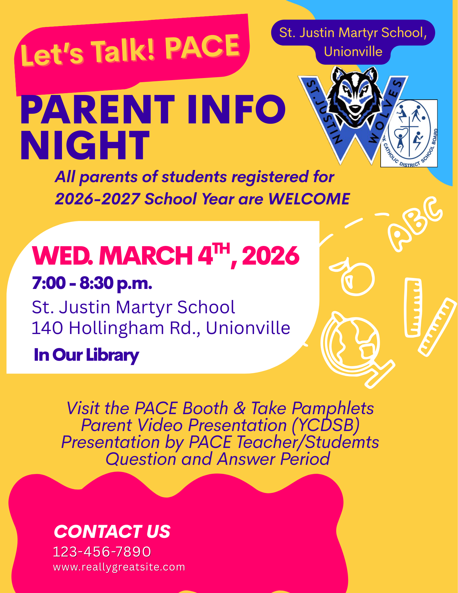 St. Justin Martyr School is hosting a Parent Information Night for our NEW PACE Students.