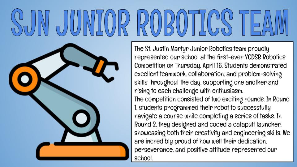 On Tuesday, March 31st, 2026, the St. Justin Martyr School Luke 4:18 Committee together with their Lead Teachers: Ms. Comper-Swift, Ms. Paljug and Ms. Perrier, introduced and presented our new SJN Land Acknowledgement which was carefully created alongside our Indigenous community partner at YCDSB. Beginning April 1st, staff and students will be reciting our SJN Land Acknowledgement in the place of the YCDSB Land Acknowledgment. ... Continue reading "NEW!!! St. Justin Martyr Land Acknowledgment"
