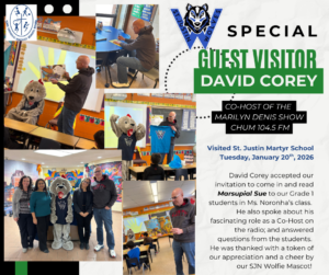 Special Guest Visitor, David Corey, co-host of the Marilyn Denis show (CHUM 104.5 FM_ visited St. Justin Martyr School Tuesday, January 20th, 2026