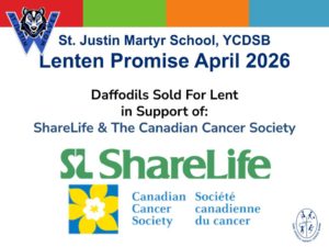 With the help of dedicated students and staff, 300 potted daffodils were sold, raising a total of $1,265.51. The proceeds were equally donated to ShareLife and the Canadian Cancer ... Continue reading "Lenten Promise 2026 – St. Justin Martyr School"