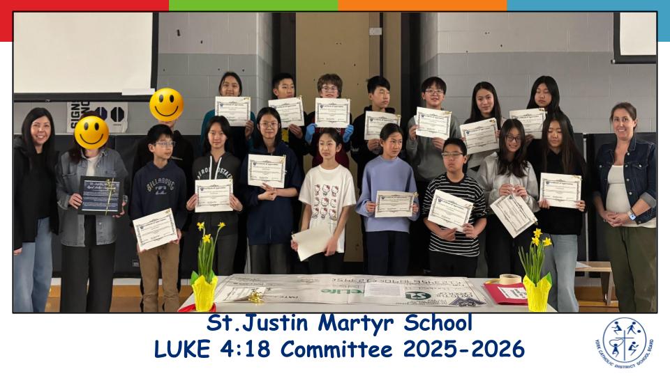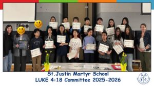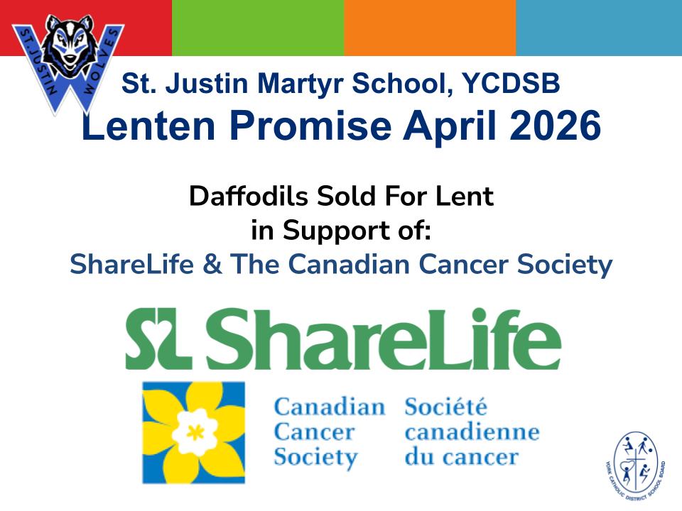 On Tuesday, March 31st, 2026, the St. Justin Martyr School Luke 4:18 Committee together with their Lead Teachers: Ms. Comper-Swift, Ms. Paljug and Ms. Perrier, introduced and presented our new SJN Land Acknowledgement which was carefully created alongside our Indigenous community partner at YCDSB. Beginning April 1st, staff and students will be reciting our SJN Land Acknowledgement in the place of the YCDSB Land Acknowledgment. ... Continue reading "NEW!!! St. Justin Martyr Land Acknowledgment"